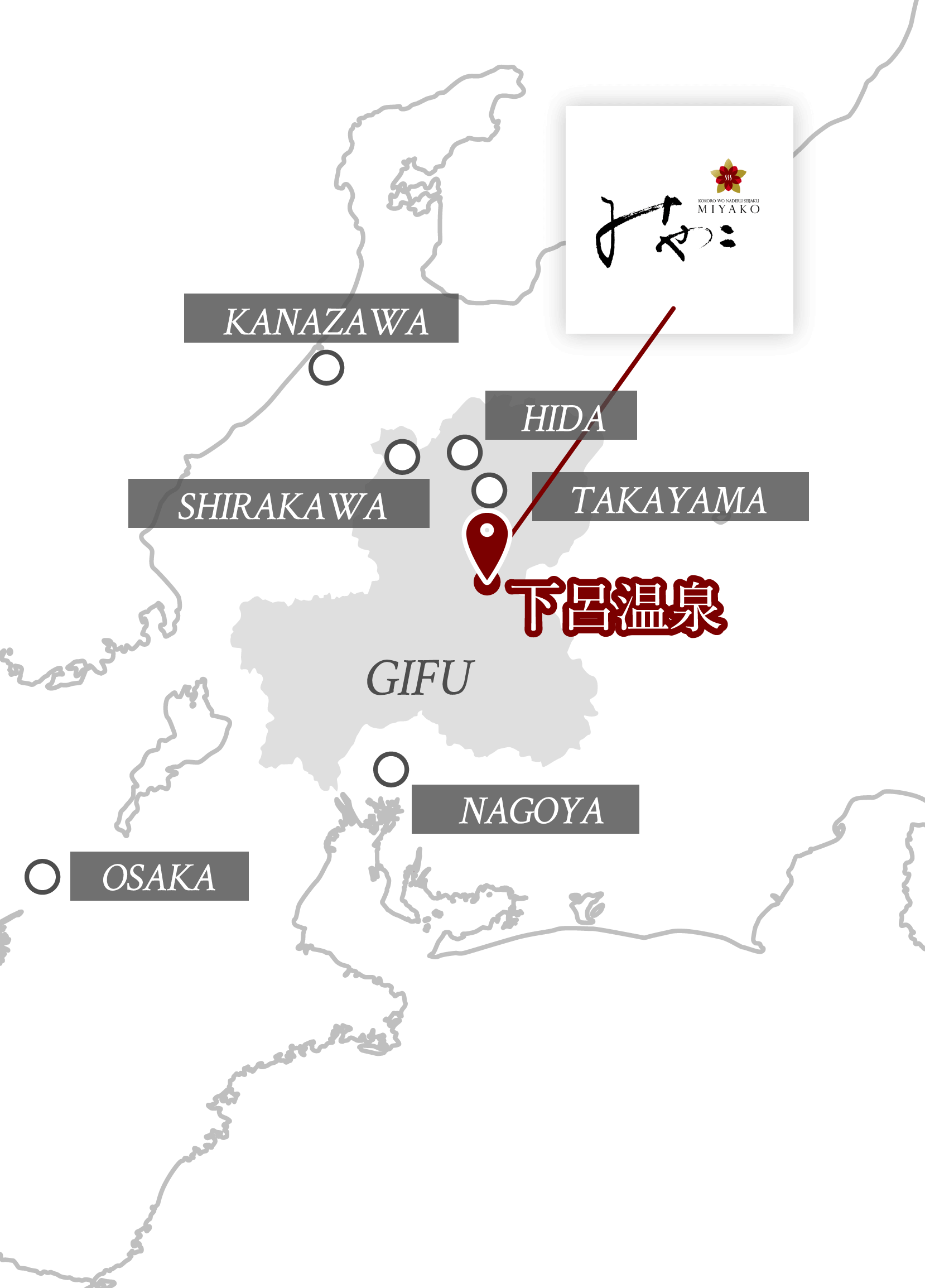Located right below the “Gero Onsen Gassho-Mura” village a little away from the Gero hot spring town. We are pleased to recommend different styles of indulgence